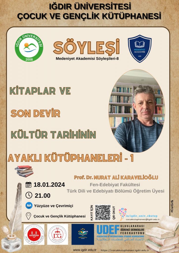 Medeniyet Akademisi öncülüğünde her hafta düzenlenen çevrimiçi söyleşilerin bu haftaki konuğu, Fen Edebiyat Fakültesi Türk Dili ve Edebiyatı Bölümü Öğretim Üyesi Prof. Dr. Murat Ali Karavelioğlu oldu.