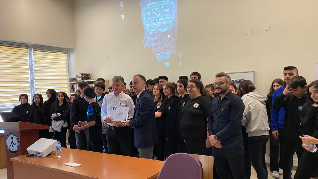 Son yıllarda büyük bir ilgiye mazhar olan TÜBİTAK Bilim Söyleşileri Projesine üçüncü kez katılan Prof. Dr. Murat Ali KARAVELİOĞLU, 20 Ekim 2023 tarihinde, saat 14.00’te, Artvin’de bulunan Ayhan Şahenk Mesleki ve Teknik Anadolu Lisesinde “Klasik Türk Şiirinin Tarihsel Zemini” başlıklı bir konferans verdi.